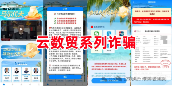 不法分子冒充“云数贸”的旗号,该项目在13年就被定性为传销。制作散布涉诈APP,打着发放“发财卡”的名义,引诱参与者下载注册。宣传办理该项目卡,每张卡可兑换4000万人民币分红。