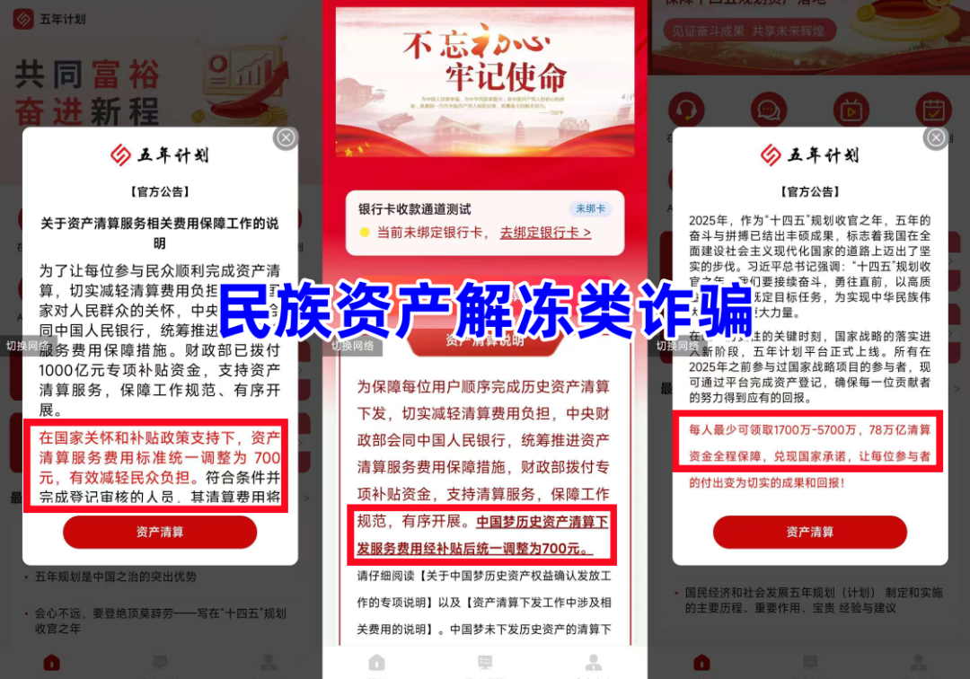 不法分子冒充“国家数据局”的旗号,打着“资产清算”的旗号,声称财政部发放1000亿元专项补贴资金,参与者实名注册,提供个人信息,缴纳700元即可领取1700万-5700万的资金清算金。