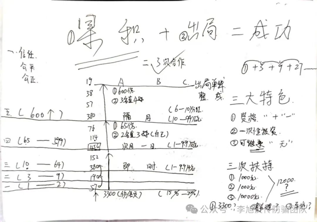 模式:该传销组织打着“资本运作”“连锁经营”“西部大开发”“消费投资”等旗号,内部宣讲五级三阶制、几何倍增,以网恋交友、介绍工作、旅游等名义将人骗至南宁进行洗脑,鼓吹投资3800元一份,二十一份69800元加入该组织,出局可以获得980万元的回报。