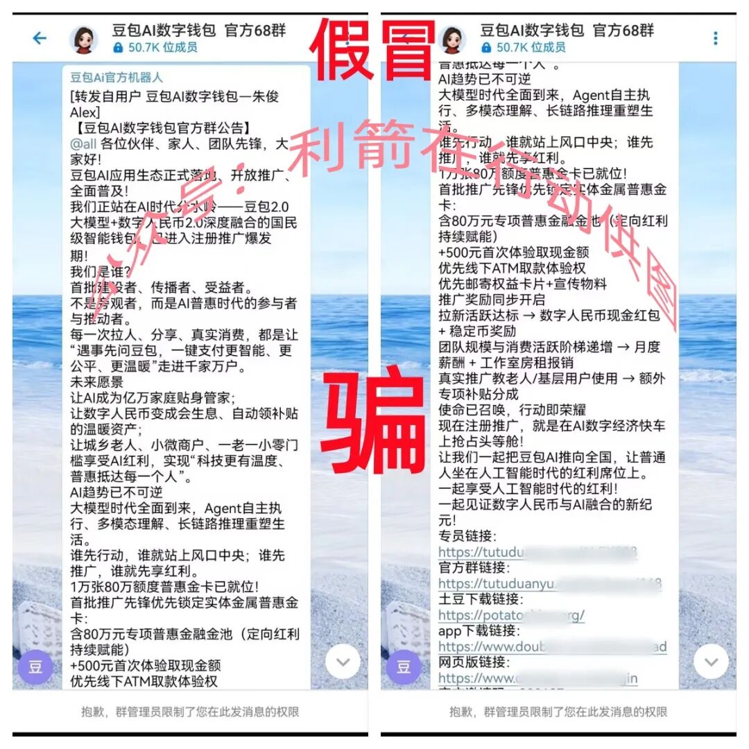 昨天(3月18日)晚上网络中上线了假冒的豆包AI数字钱包APP,该项目宣传“注册就给含80万元的普惠金卡+500元,优先邮寄..............邀请人来注册,还要给原始股.......”有这种好事情?