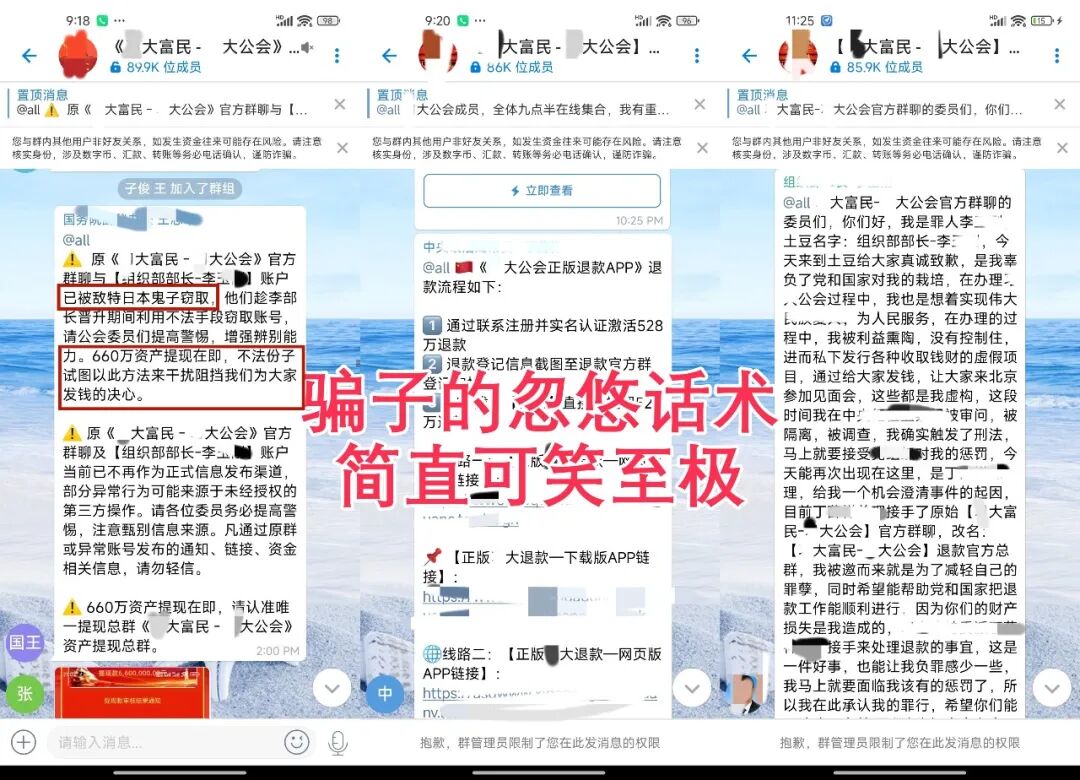 近日多名受害者反馈,在该项目投入巨额资金后,平台方频繁修改规则,最终导致所有投资血本无归;更恶劣的是,不法分子严格禁止项目成员相互沟通联系,导致受害者连举报所需的证据材料都无法收集。