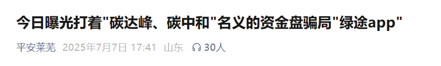 当年“碳中和APP”在短时间内诈骗金额超100亿元后直接关网跑路,2025年7月7日莱芜公安已明确通报:绿途项目为伪造国家政策+传销式裂变的投资陷阱。
