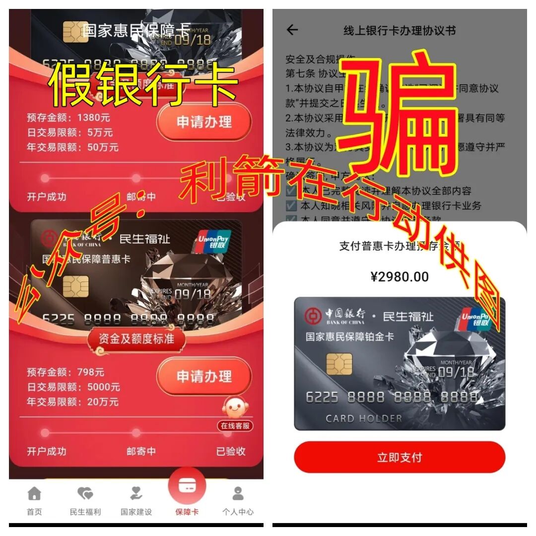 民生福祉APP是打着“国家项目”旗号的民族资产解冻类诈骗项目,让参与者提交身份信息办理虚假的普卡交798元、钻石卡交1380元、铂金卡交2980元,还谎称不交“激活费”、“提现费”等,这种谎言不攻自破,既然要发钱直接在所发的钱里面扣除不就行了吗?何必多此一举的收钱,收款人全是来路不明的个人账户,与宣传是“国家项目”明显不符,是诈骗洗钱的虚假项目,已经到了最后骗钱阶段,即将跑路!