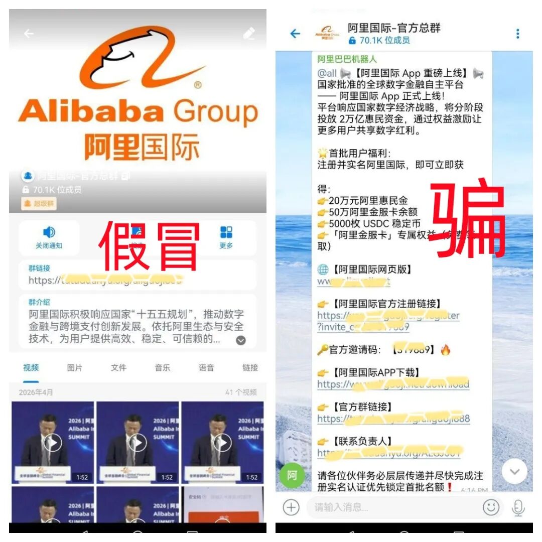 提醒:按照同类型骗局套路,假冒的阿里国际APP是前期利用虚假的高额回报做“诱饵”,骗取参与者身份信息,后期被骗人想兑现就要交各种虚假的费用,一次次的交钱就是不会兑现,直到把参与者骗的精疲力尽,无钱再交或者不再交钱的时候,平台就跑路了。
