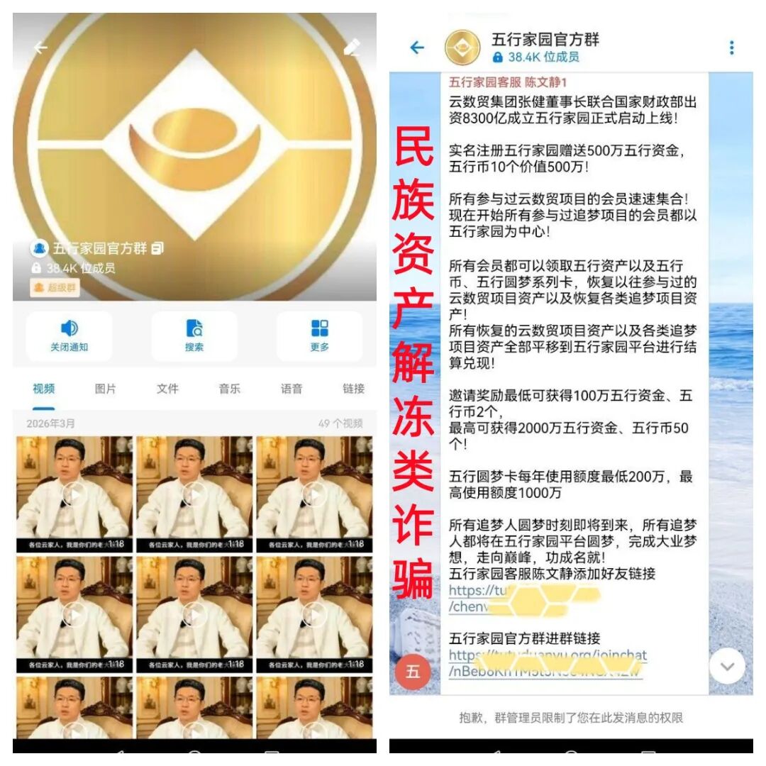 五行家园APP是网站搭建在境外的民族资产解冻类诈骗项目,是病毒软件,按照同类型骗局套路,想拿到500万元,想把这“圆梦卡”中的钱拿出来用,就要交“激活费”、“个人所得税”、“账户管理费”、“公证费”、“U盾费”等等虚假编造的费用进行诈骗。