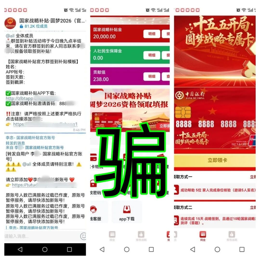 近期网络中出现了虚构的“国家战略补贴”APP,该项目宣传给注册参与者1880万元,每天签到给1388元,还有邀请人注册的奖励...............这是一眼假的民族资产解冻类诈骗项目。