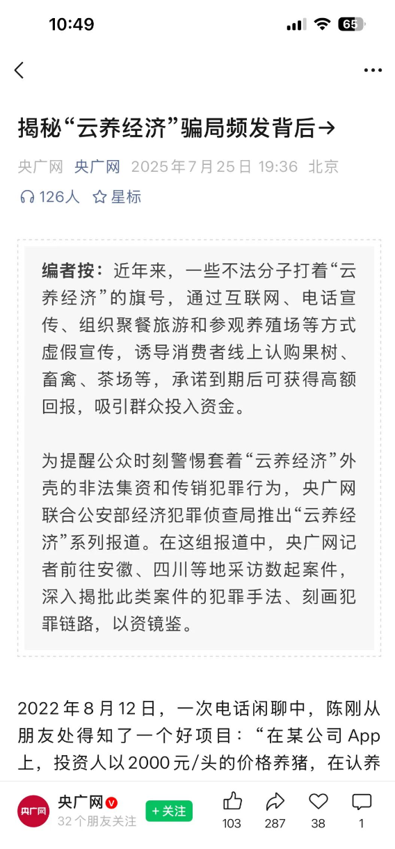 最近冒出来不少“云养殖”项目,打着“互联网+农业”“智慧养殖”的旗号,听着挺像那么回事,其实就是资金盘。