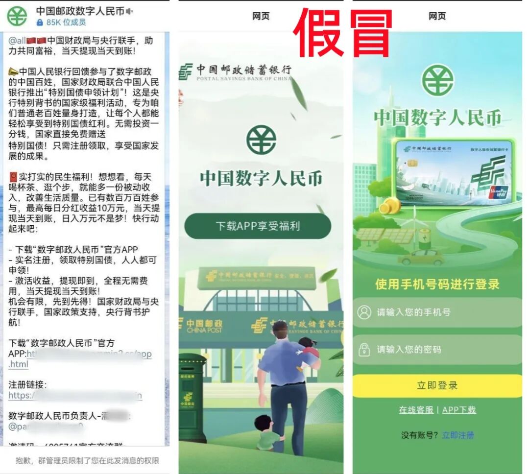4月8日网络中出现了假冒中国邮政的“数字邮政”APP(又名“中国邮政数字人民币”APP、“中国数字人民币”APP)