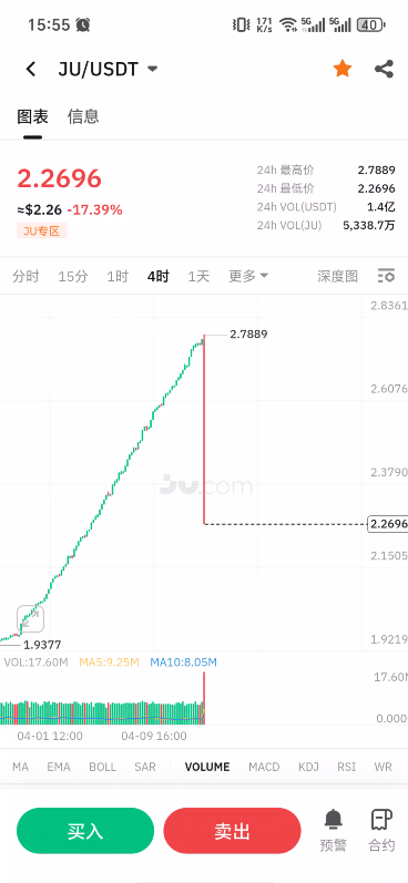4月13日下午15:55,JU币毫无征兆瞬间砸盘,从2.7889U直接砸到2.2395U,随后又将币价拉起,币价拉起后,不少人发现自己无法提现了。