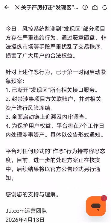 所谓的涉事项目方,本身就是聚币找来的托,甚至可能就是聚币自己的马甲。封禁账户、冻结资产,不过是做给散户看的戏码,让你觉得平台在做事、在保护你,实际上冻结的都是空壳账户,真正的资金早就被聚币转移走了。