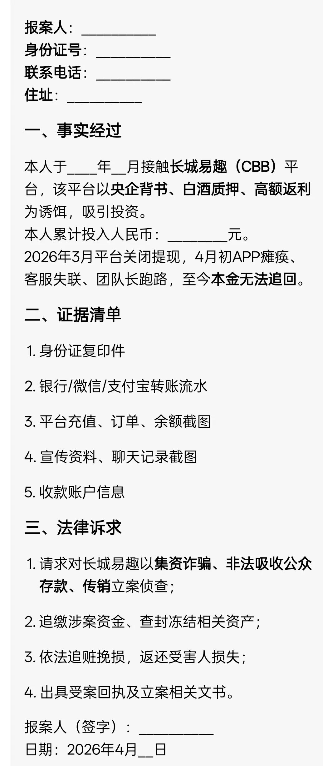 怎么写一份书面投诉模板?(含报案追责诉求证据清单)