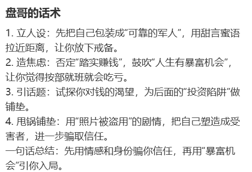 又上线了一些诈骗项目,你知道么?1、扩大内需APP扩大内需APP在9月1日停止兑现,这个杀猪盘“杀猪”了。这几天,扩大内需APP又开始作妖了,假冒国家机关,谎称给达到5级(含)以上的参与者发放“扩大内需专属联名卡”,用内虚卷兑换,兑换多少,卡里面就有多少钱?一直兑换到12月份,少的也有20多万,上千...