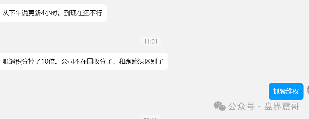 积分早就跌得没眼看了,会员群里都炸锅了。操盘手这波圈了可不止一个小目标,现在装模作样发公告,真当大家是傻子?就算系统真能打开,肯定也是各种限制让你血本无归。